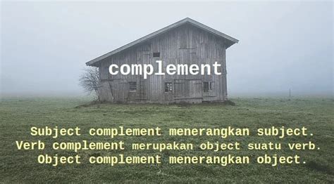 Pengertian ComplementComplement adalah kata atau kelompok kata yang melengkapi makna dari subject, verb, atau object.